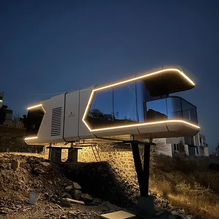 Capsule Mountain Villa is equipped with tea and coffee making facilities for self-catering in a dining area.